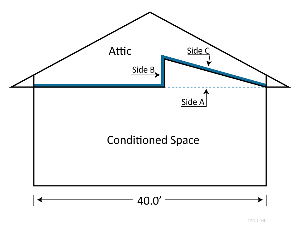 Hint: there are three ceiling areas-- flat is 25.0’x30.0’, knee wall is 4.0’x30.0’, and sloped is 15.5’x30.0