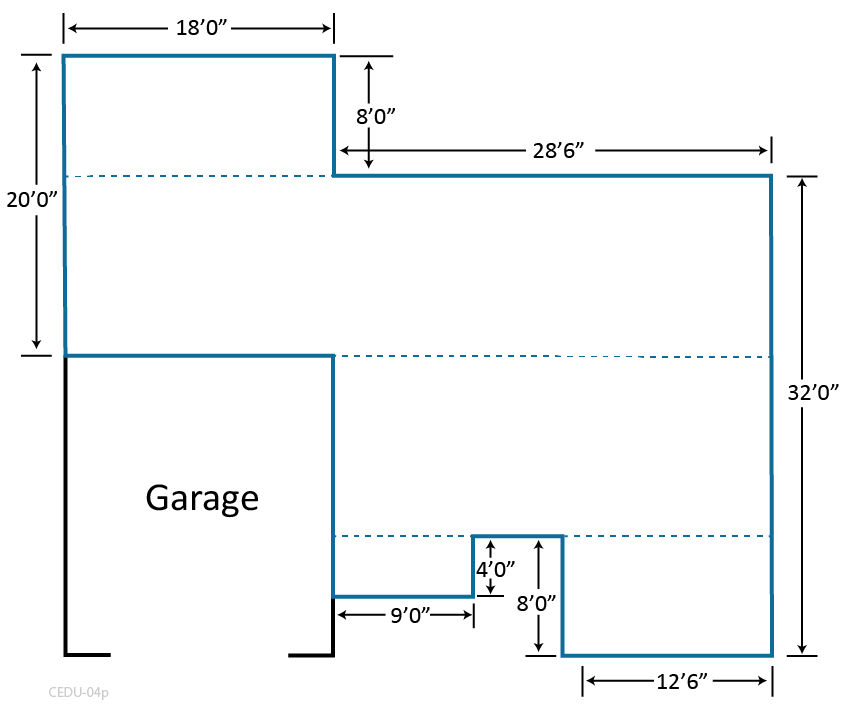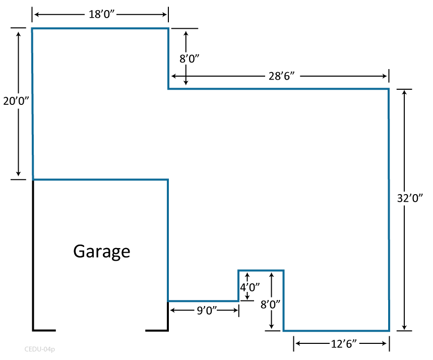 Hint 1: Add each length of the conditioned space’s walls, including the 16.0’ and 18.0’ walls adjacent to the garage.
